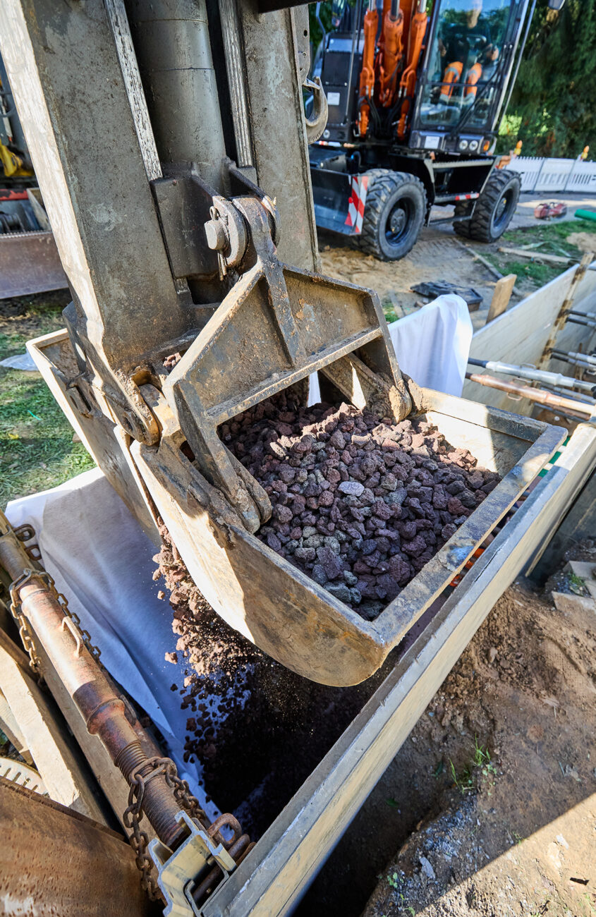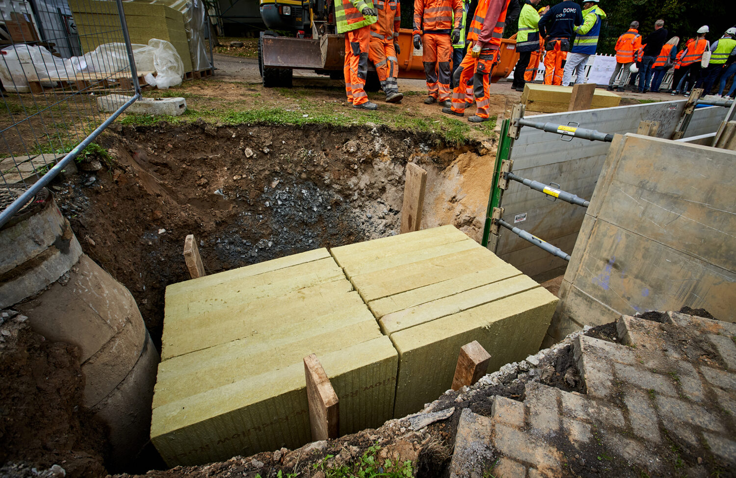 The BoRSiS system combines the storage of rainwater from disconnected areas and the promotion of tree growth in a single linear construction measure: mixed water continues to be safely drained via root-resistant ductile cast iron pipes with cement mortar coating, while the pipe zone in the pipe trench is designed as a ventilated root space. The Rockflow rock wool in the main filling of the pipe trench stores both small and large amounts of rainwater and releases it over a longer period of time by capillary action via a compensating layer of sand into the root space. The system thus significantly reduces the risk of flooding during heavy rainfall events and at the same time provides a generous, expanded root space for roadside trees – without requiring any additional space!