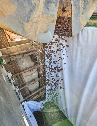 - Infiltration: A layer of sand between the rock wool and the root space allows water to infiltrate into the coarse-grained substrate, while the root-resistant pipes continue to drain mixed water.